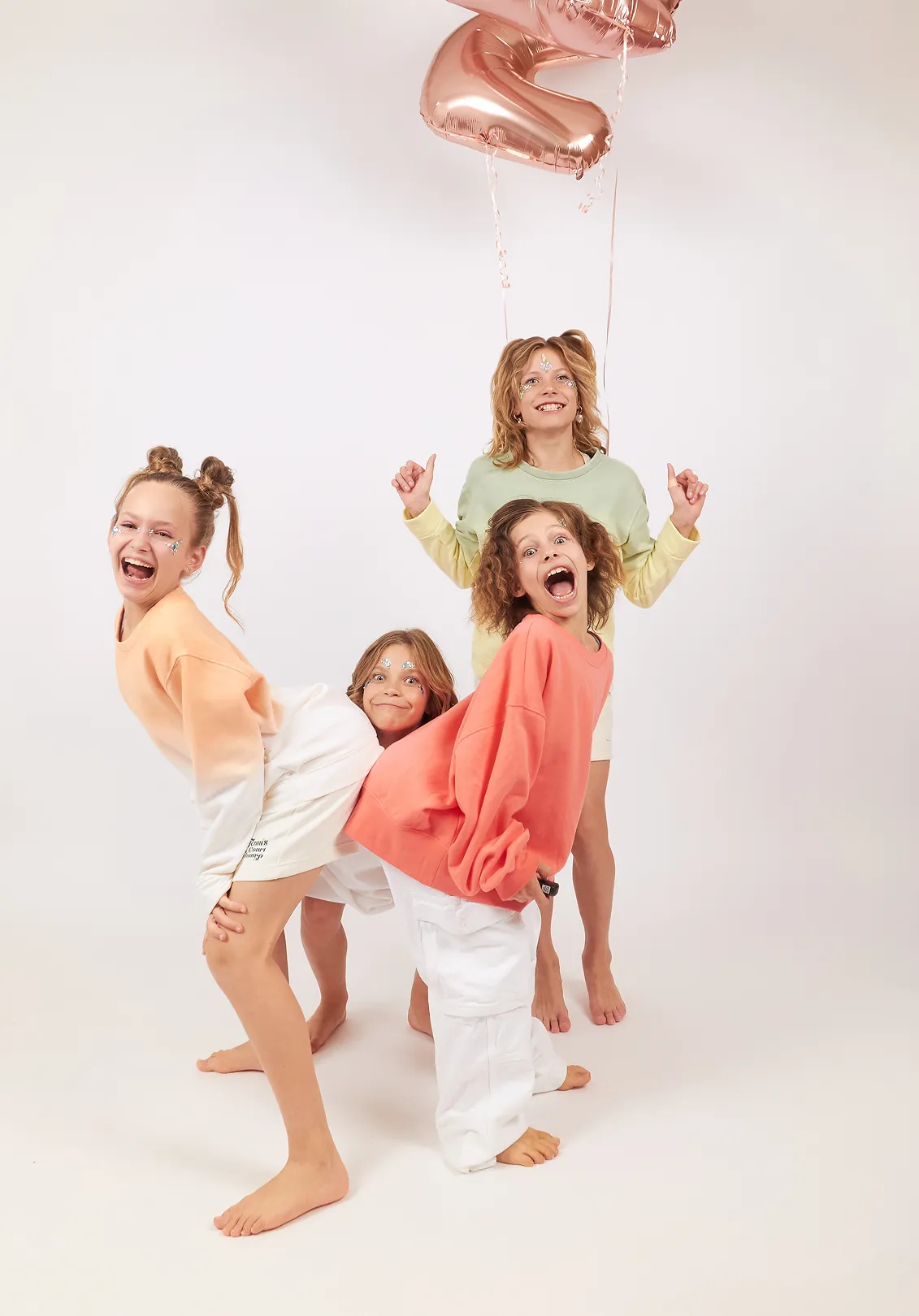 - Fun props: glasses, hats, artificial flowers, a huge teddy bear, stools